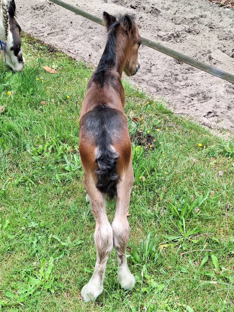 En toen kwam de verrassing: ik had stiekem gehoopt op een bruine kleur, al weet je dat natuurlijk nooit van tevoren. Maar jawel hoor hij is gewoon helemaal bruin! Wat een godsgeschenk. Vanaf het eerste moment wist ik: dit is een bijzonder veulen.