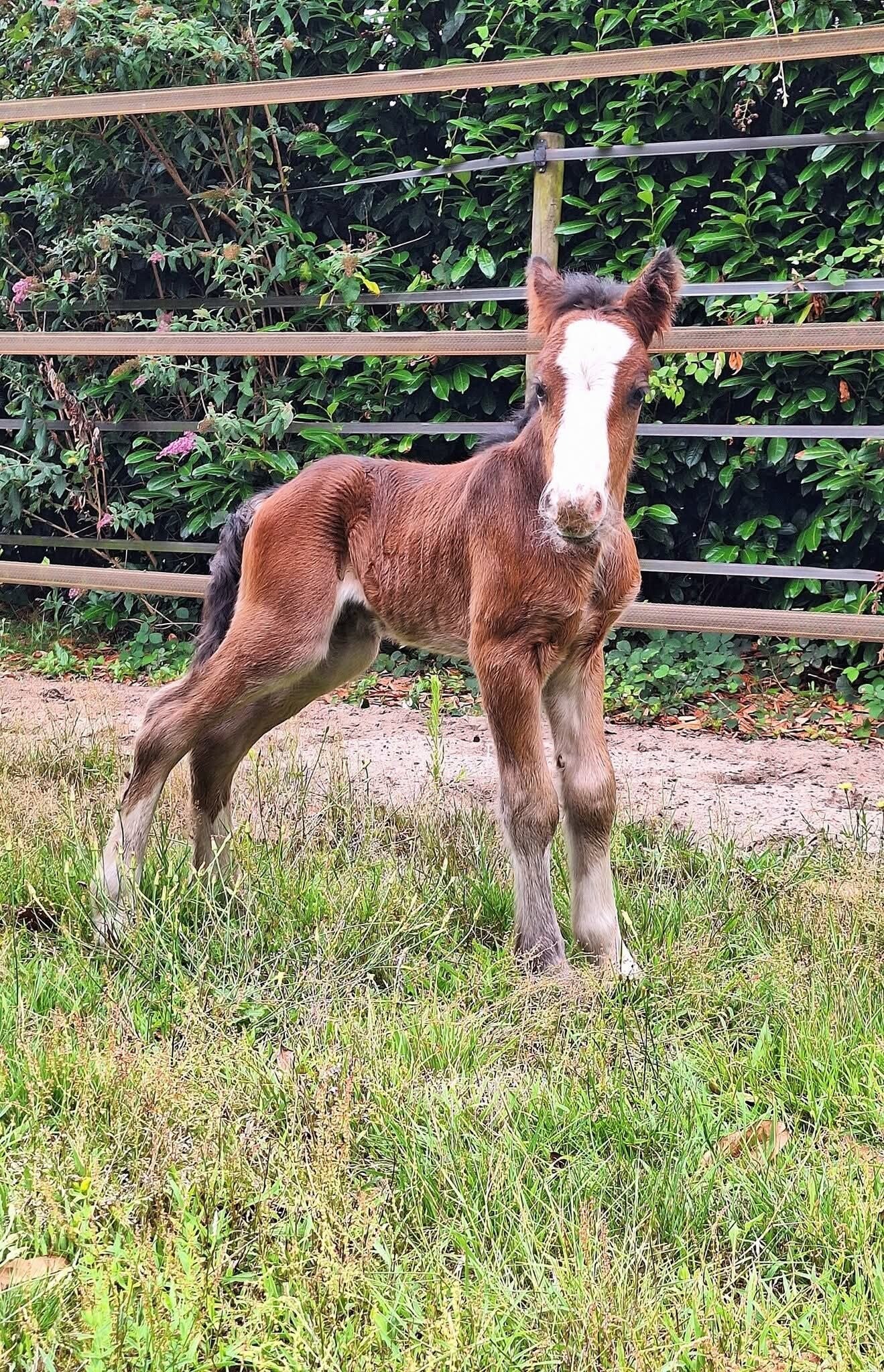 Maar toen… kreeg ik een bericht. Een prachtig klein merrieveulentje, en jawel met bruin! Mijn favoriete kleur 🤎. En met een bouw waar ik meteen voor viel: perfect voor het werk voor de wagen. Wat een beenwerk, en wat een mooie hals en borstpartij.